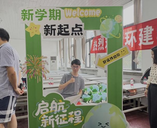 在井然有序的报到流程之后,新生们手持精心设计的环建主题手举牌在立体合影墙前定格瞬间。背景墙巧妙融合了环保主题与迎新元素,志愿者用相机为每名新生拍摄专属入学照,成为新生们开启环建之旅的第一份实体记忆。