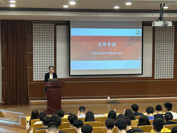 学院教授、高被引科学家刘宁作为导师代表寄语新生。她结合自身深耕环境工程领域的科研经历与育人经验,分享了“从兴趣到深耕”的科研感悟,鼓励同学们既要保持对未知领域的好奇心,以“打破砂锅问到底”的韧劲探索科学问题,也要注重团队协作与跨学科学习,在系统的科研训练中锤炼创新思维,学会在失败中积累经验,最终实现从“入门者”到“研究者”的蜕变。