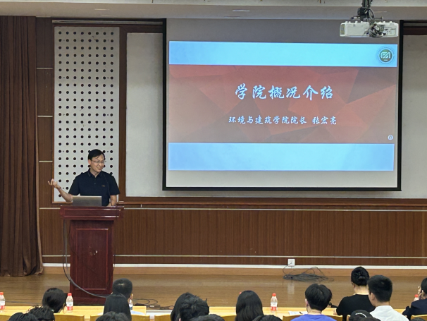 院长张宏亮代表学院对2025级研究生的到来表示热烈欢迎。他从学院的发展历程、学科特色、师资力量、科研平台及人才培养成果等方面展开介绍,重点提及近年来学院在绿色建筑、生态环境治理等领域的突破性进展与标志性成果,鼓励新同学们尽快适应研究生阶段的学习节奏,主动对接学科前沿,将个人发展与学院建设、行业需求紧密结合,在探索中成长,为学科发展注入新活力。