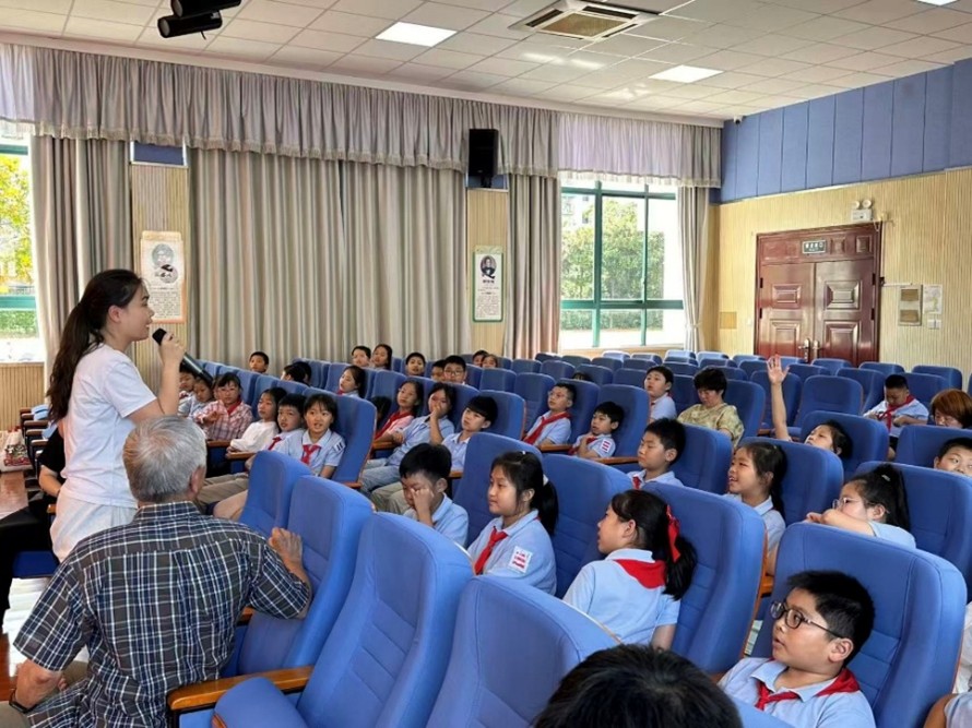 最令人动容的是孩子们在互动环节中的纯真反馈,当被问及听完故事的感受时,一只只小手争先恐后地高高举起,用童言童语阐释出他们的领悟。工农新村小学的校长居臻殷说:“这个烈士故事很有价值,鲜活且有生命力,这种宣讲形式也很新颖且有效,它让孩子们真切地感受到,历史离我们很近,英雄从未离开。”最后,现场的老师、研究生们就如何将红色教育更好地融入日常教学,开展大中小一体化思政教育进行了深入的探讨和交流。
